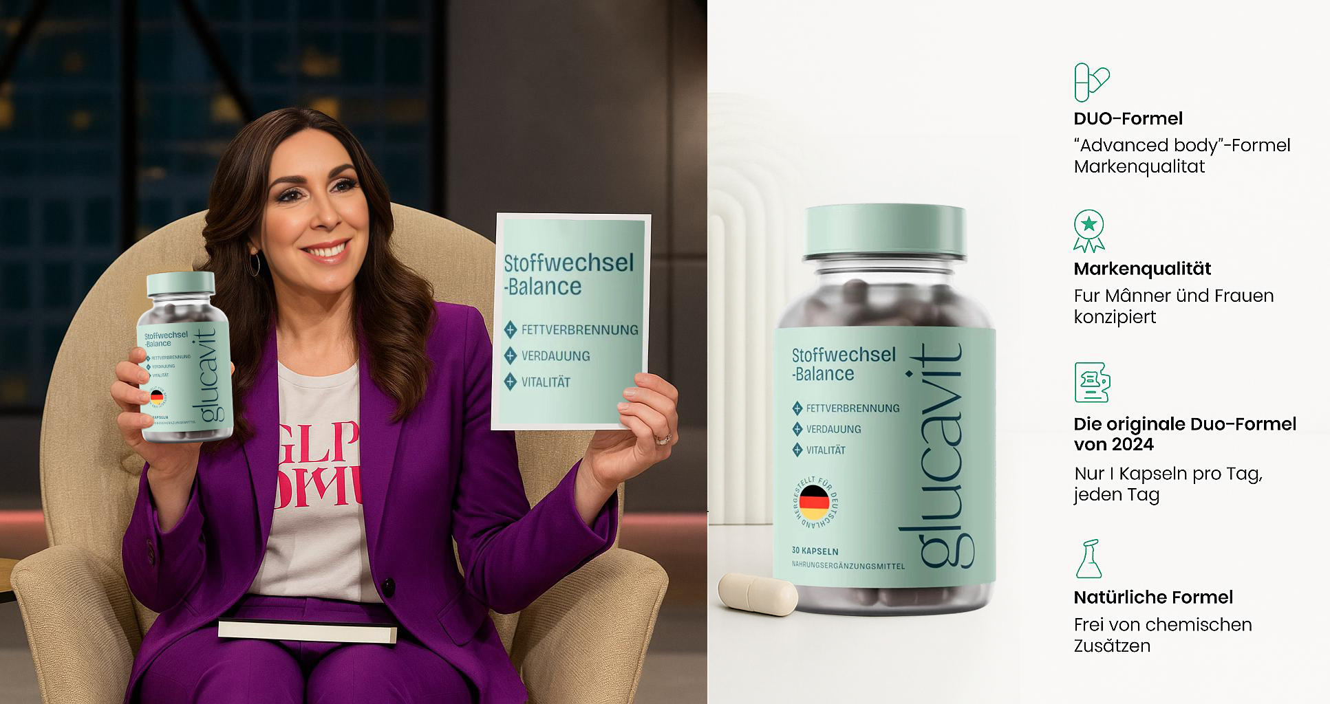 - Glucavit besteht aus speziellen Kapseln, die zeitverzögert die Wirkstoffe an den Körper abgeben. So kann mit Einnahme von eins der Kapseln der Körper in einen 24-stündigen Fettverbrennungsmodus gesetzt werden