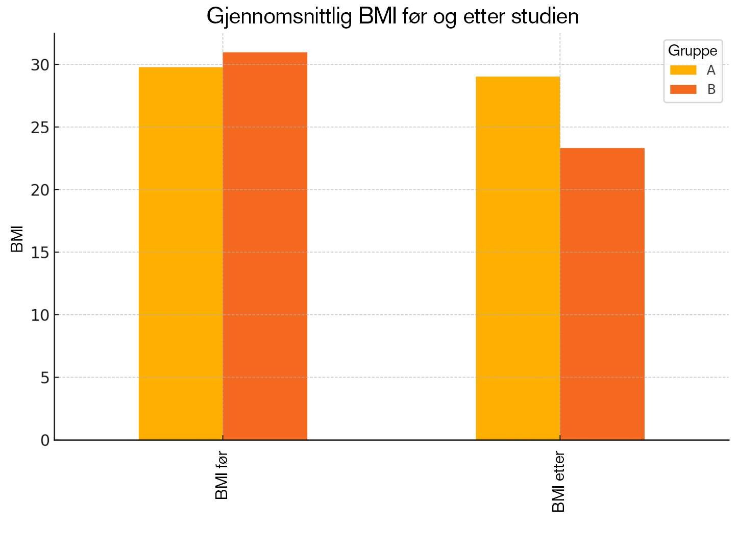 Resultatene av studien gjenspeilte seg også i testpersonenes BMI. I gjennomsnitt klarte gruppe B å redusere BMI fra den øvre grensen på 32 til 23.